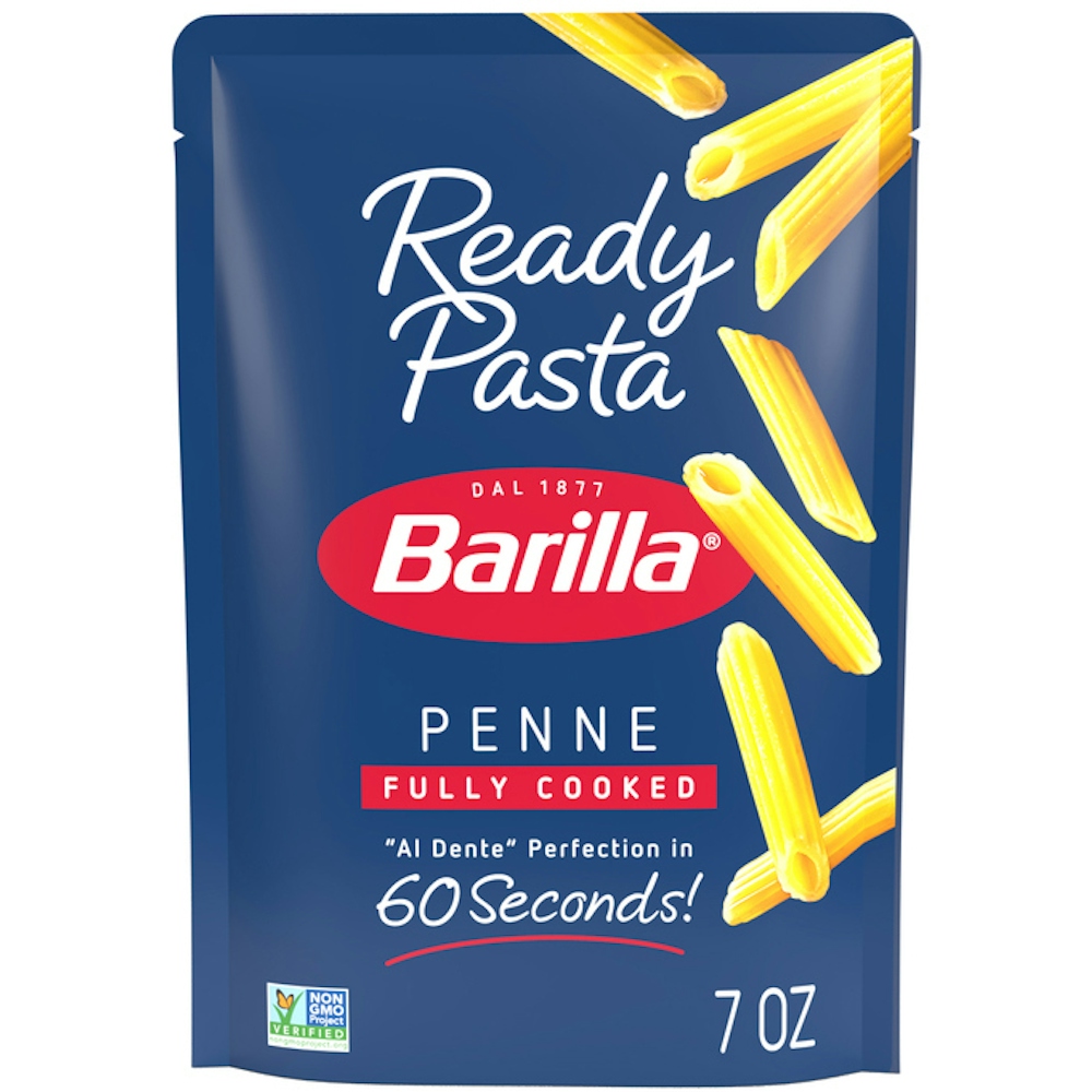 Barilla Ready Pasta Penne is a fully cooked pasta that's ready in the microwave in just 60 seconds. Made with 3 simple ingredients—a dash of extra virgin olive oil, a pinch of sea salt and authentic Barilla pasta—Ready Pasta has no preservatives and is non-GMO certified. Simply heat the pouch in the microwave then add your favorite pasta sauce or toppings for a quick and delicious dish or pasta meal.