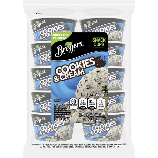 - The manufacturer of Oreo Cookies & Cream Light Ice Cream Snack Cups, Oreo Cookies & Cream is Breyers.