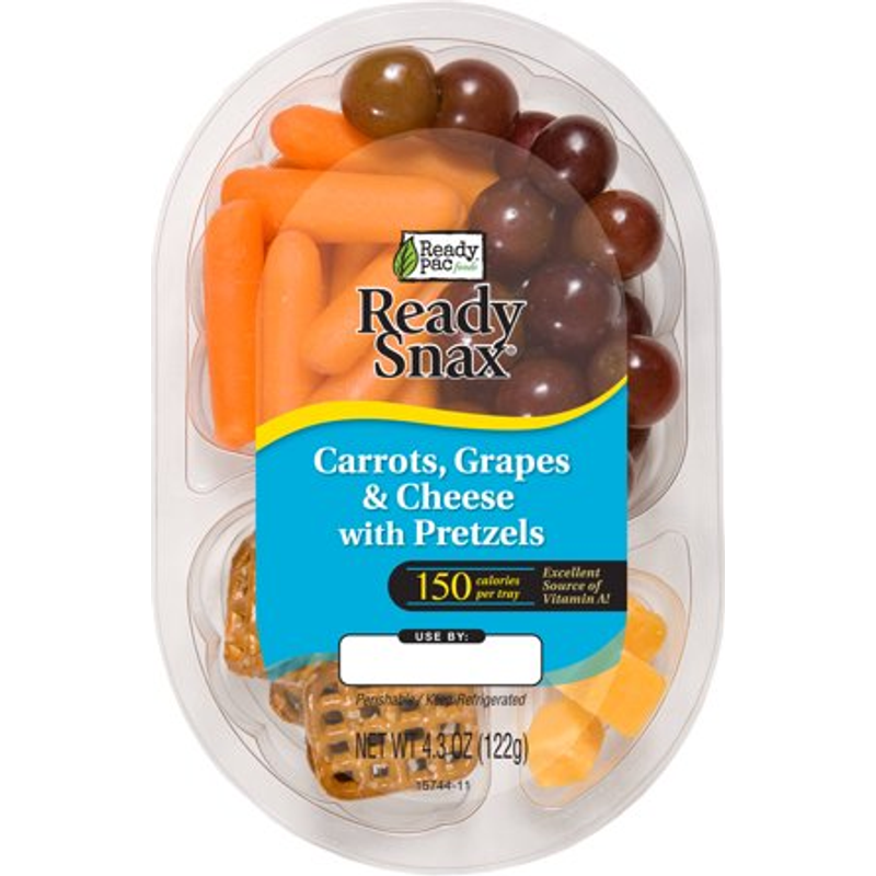 Carrots, Grapes, Pretzels (Unbleached Enriched Wheat Flour [Flour, Niacin, Reduced Iron, Thiamine Mononitrate-B1, Riboflavin-B2, Folic Acid], Malt, Salt, Soybean Oil, Sodium Bicarbonate), Cheddar Cheese (Cheddar Cheese [Pasteurized Milk, Cheese Culture, Salt, Enzymes, Annatto {Vegetable Color}], Potato Starch and Powdered Cellulose [to Prevent Caking], Natamycin [a Natural Mold Inhibitor]).