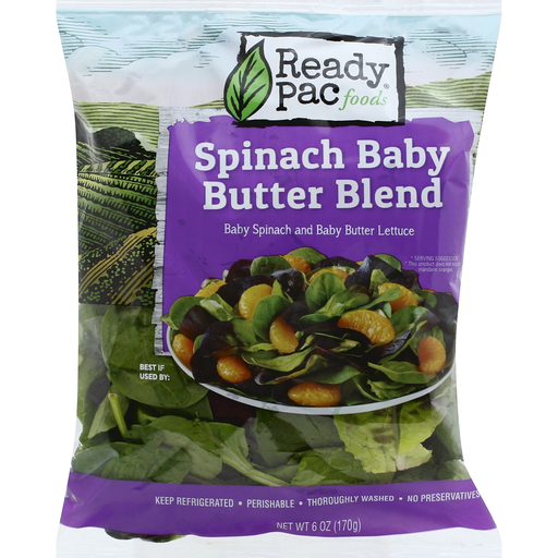 - The manufacturer of Spinach Baby Butter Blend Baby Spinach and Baby Butter Lettuce, Spinach Baby Butter Blend is Ready Pac.