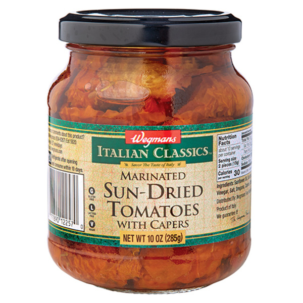 - The manufacturer of Marinated Sun-Dried Tomatoes with Capers is Wegmans.