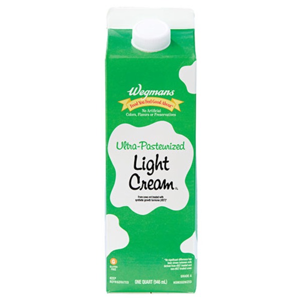 - The manufacturer of Ultra-Pasteurized Light Cream is Wegmans.