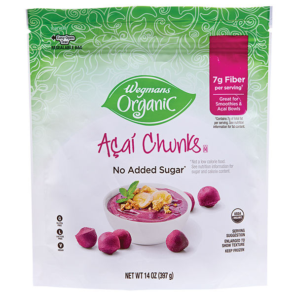 USDA Organic. Great for Smoothies & Acai Bowls. 7g Fiber per serving. No Added Sugar*. *Not a low calorie food.