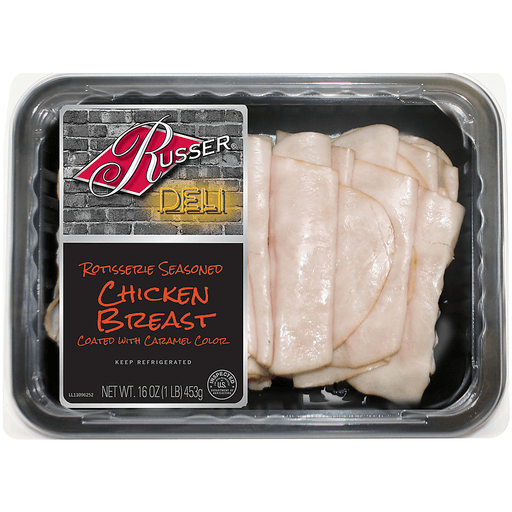 - The manufacturer of Rotisserie Seasoned Chicken Breast is Russer.