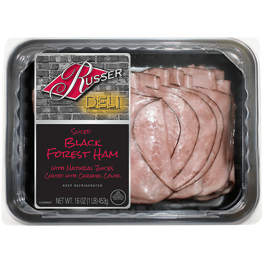 - The manufacturer of Deli Sliced Ham, Black Forest is Russer.