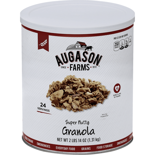 - The manufacturer of Super Nutty Granola is Augason Farms.