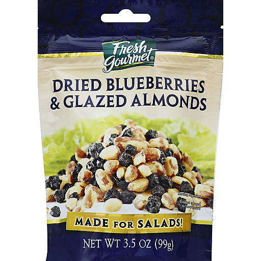 - The product category for Fresh Gourmet, Dried Blueberries & Glazed Almonds is Salad Dressing.