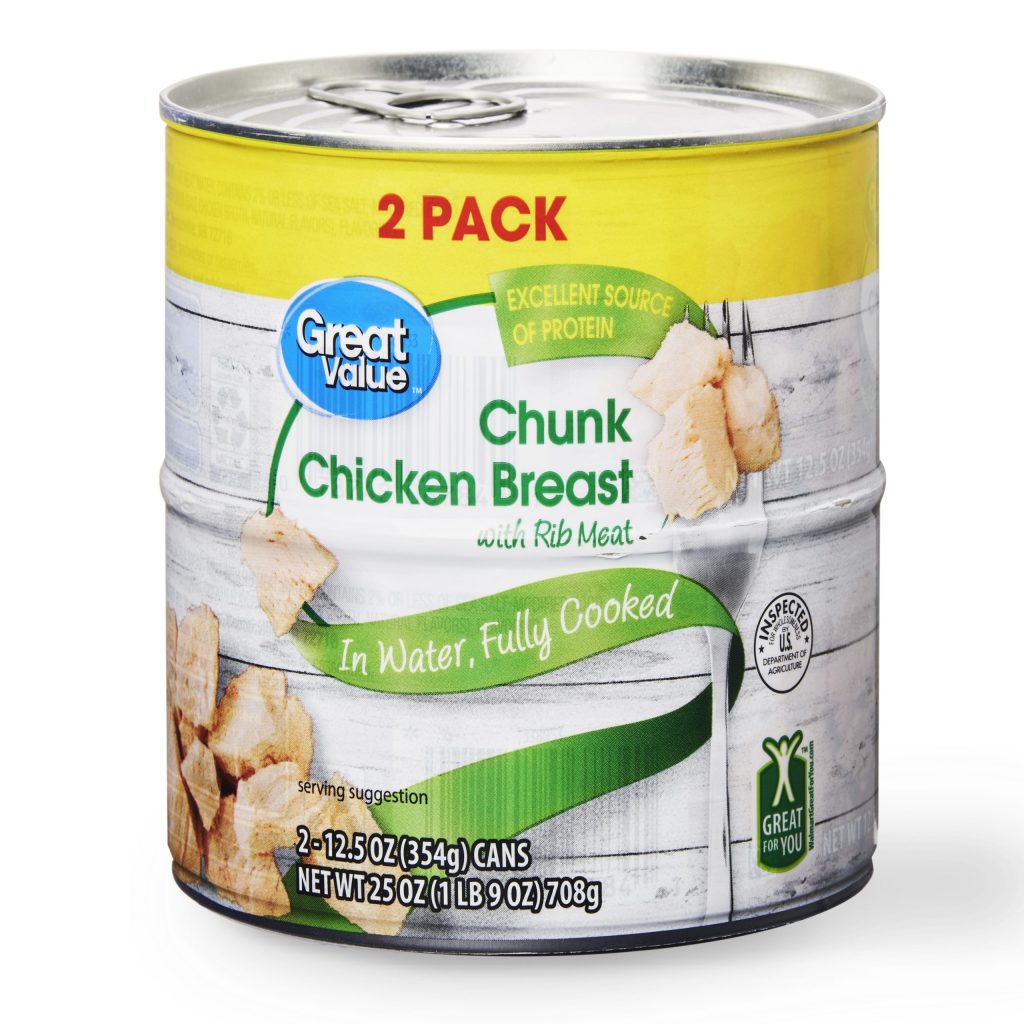 - The manufacturer of Chunk Chicken Breast with Rib Meat in Water, Chunk in Water is Great Value.