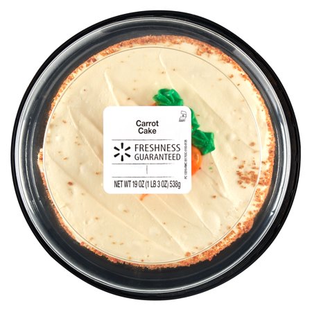 Freshness Guaranteed Carrot Cake is a single-layer cake with cream cheese frosting. This spicy, sweet cake is topped with a trio of carrots in icing and it has cake crumbs around the sides. This 7-inch cake contains 6 servings. Carrot cake is a delicious dessert with a cup of coffee or a sweet snack any time. Made with real carrots and crushed pineapple, this cake is baked with a dash of warm, comforting cinnamon to bring out the classic carrot cake flavors you love. Carrot cake is a perfect treat to bring to an office potluck or to share with your family after dinner. Every day is a celebration with the Freshness Guaranteed Carrot Cake. Freshness Guaranteed provides you and your family with high-quality fresh food that saves you time and money, many of which are cooked fresh or prepared in stores. Convenient solutions with value added in every Spark Fresh item.