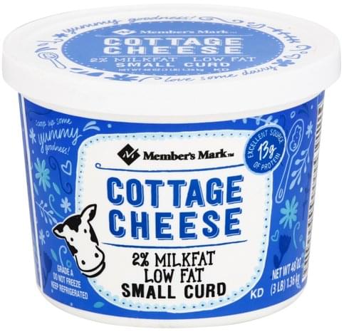 - The manufacturer of Small Curd Low Fat Cottage Cheese is Members Mark.