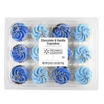 Treat yourself to a bite of Freshness Guaranteed Vanilla and Chocolate Cupcakes. These fun-filled cupcakes contain an assortment of moist, decadent vanilla and chocolate cupcakes that are frosted with dark blue and light blue buttercream icing, and topped with multicolor sprinkles for a fun, celebratory touch. These cupcakes are great to serve to guests at your next party or get together, bringing to a friend's house, sharing with co-workers, or a sweet treat to indulge in on any day. The cupcakes come in a reclosable container for convenience and to help maintain freshness in-between snacking. The container comes with 12 cupcakes so there is plenty to share. Satisfy your sweet tooth with Freshness Guaranteed Vanilla and Chocolate Cupcakes. Freshness Guaranteed provides you and your family with high-quality fresh food that saves you time and money, many of which are cooked fresh or prepared in stores. Convenient solutions with value added in every Spark Fresh item.