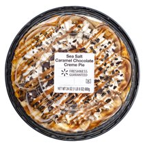 Freshness Guaranteed Sea Salt Caramel Chocolate Creme Pie, 24 oz Creamy chocolate filling topped with delightful whipped creme. Sprinkled with chocolate shavings and caramel drizzle. Delicious crust. Perfect blend of sweet and salty. Indulge in a sweet treat. Great for family gatherings and other social get-togethers. Serves approximately 5 slices.