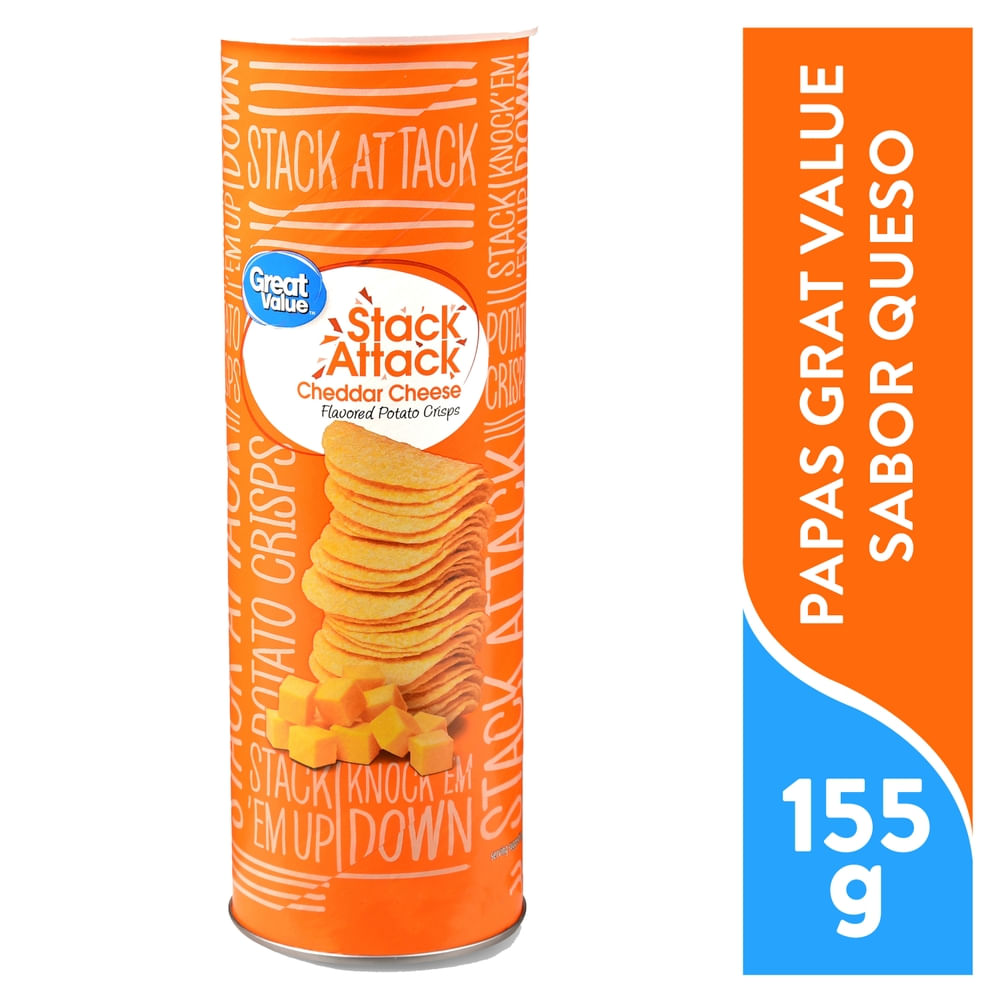 - The product category for Cheddar Cheese Flavored Stack Attack Potato Crisps, Cheddar Cheese is Chips.