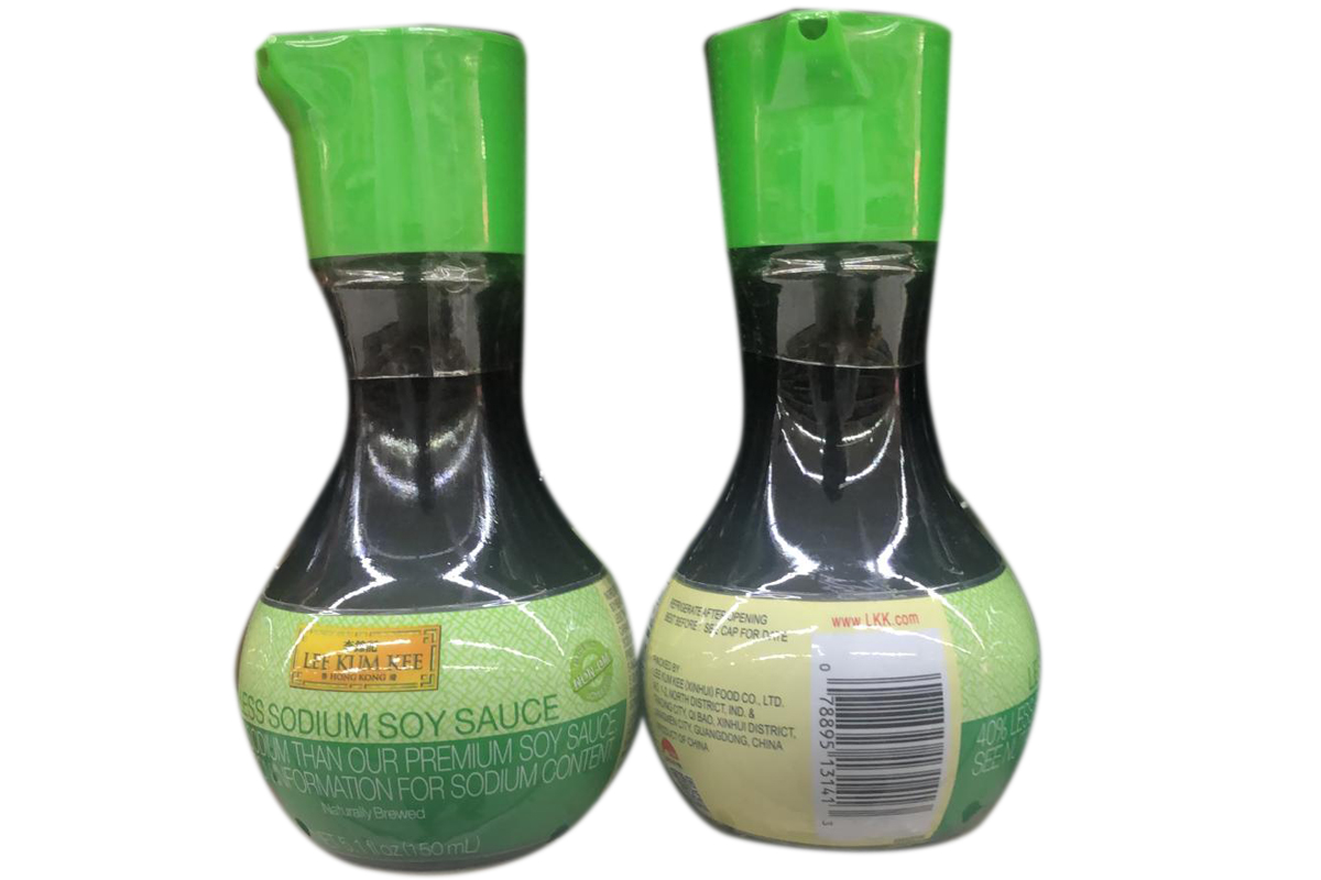Lee Kum Kee Less Sodium Soy Sauce in 5.1fl oz (150ml) bottle. Product of China.