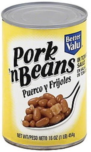 - The product category for Better Valu, Pork 'N Beans in Tomato Sauce is Beans.