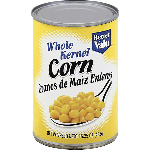 - The product category for Better Valu, Whole Kernel Corn is Soups & Broths.