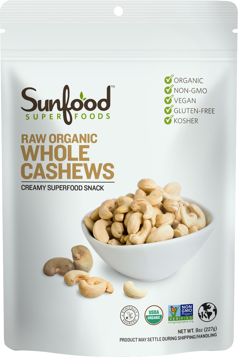 - The manufacturer of Organic Whole Cashews is Sunfood.