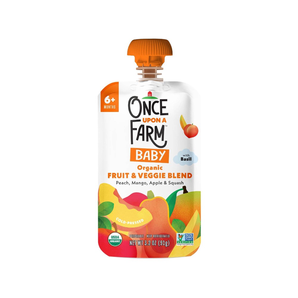 - The manufacturer of Baby Fruit & Veggie Blend Peach, Mango, Apple & Squash is Once Upon a Farm.