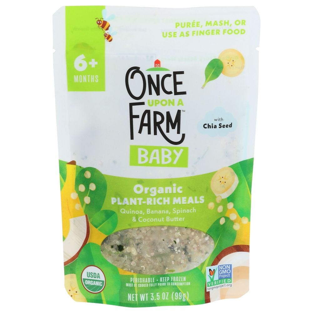 - The manufacturer of Organic Plant Rich Meal Sweet Spinach & Quinoa is Once Upon a Farm.