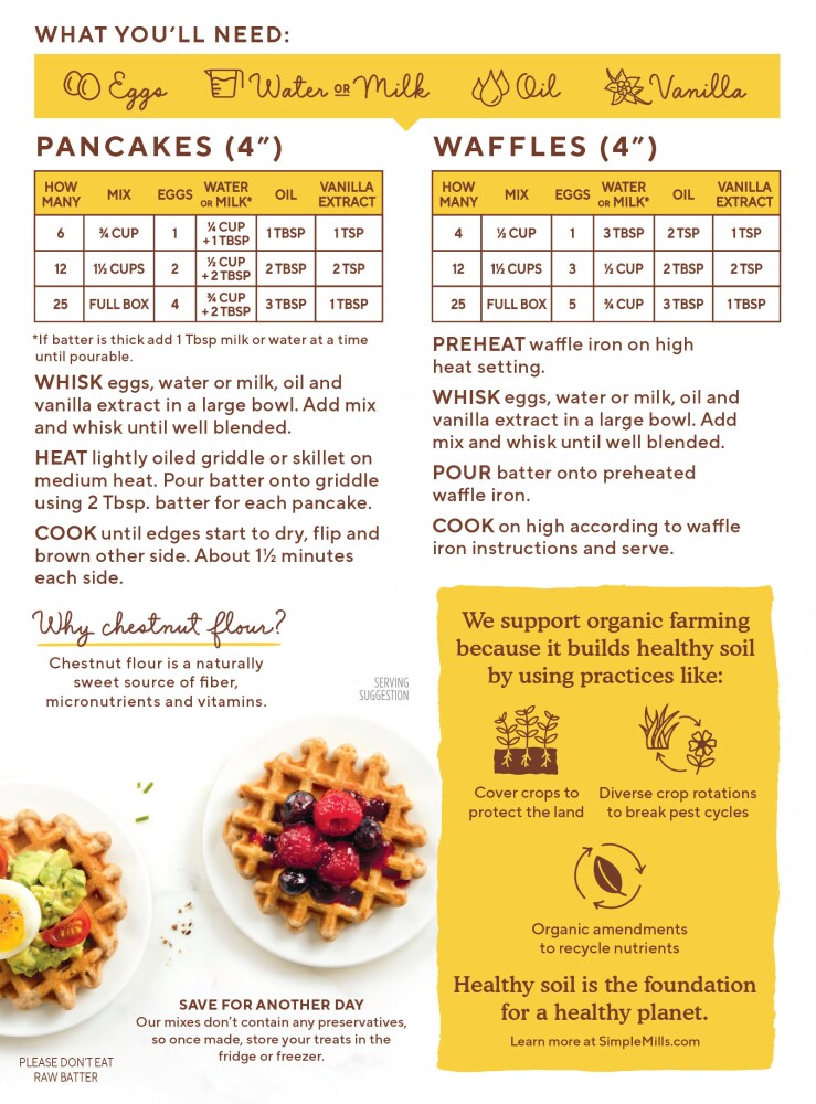 - The manufacturer of Chestnut Flour Pancake and Waffle Mix is Simple Mills.