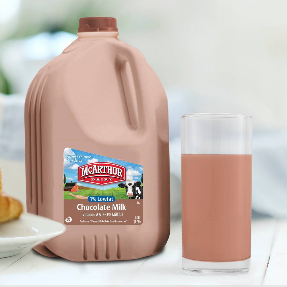 - The manufacturer of Chocolate 1% Lowfat Milk is McArthur Dairy.