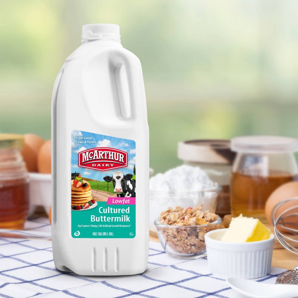 McArthur Dairy's 1% Low Fat Cultured Buttermilk with a third of the fat of our Whole Buttermilk with the same thick consistency. Great for baking and cooking such things as fried chicken or fish, biscuits, cinnamon rolls, pancakes or adding to homemade milkshakes. We all grew up on McArthur Dairy! .