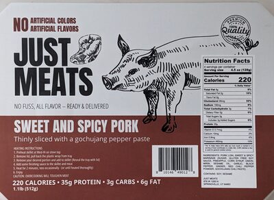- The manufacturer of Sweet and Spicy Pork is Just Meats.