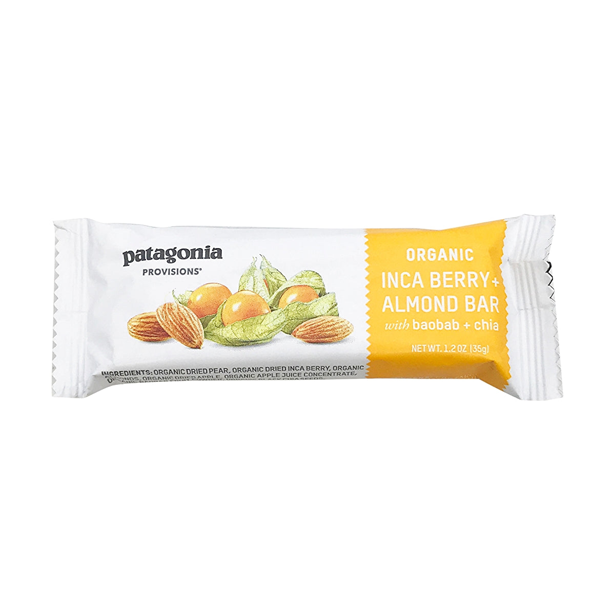 - The manufacturer of Inca Berry + Almond Organic Bar with Baobab + Chia, Inca Berry + Almond is Patagonia Provisions.