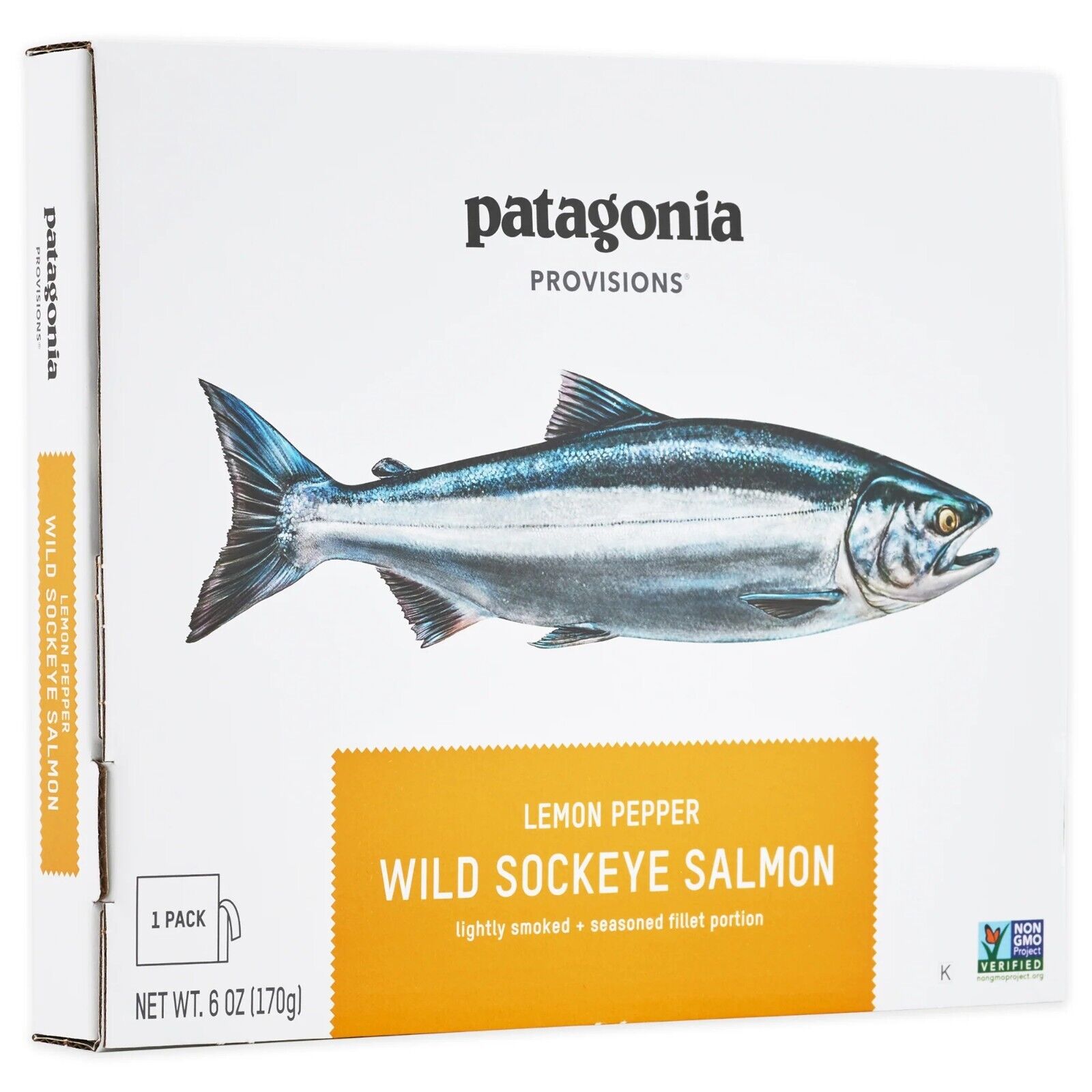 Patagonia Provisions | Harvested from responsibly managed fisheries in the icy waters of the North Pacific, our Lemon Pepper Wild Sockeye Salmon is fish you can appreciate on every level. The fillets are brined, seasoned with organic lemon and cracked black pepper, and lightly smoked to highlight the fine flavor, deep red color, and firm texture for which sockeye are prized.