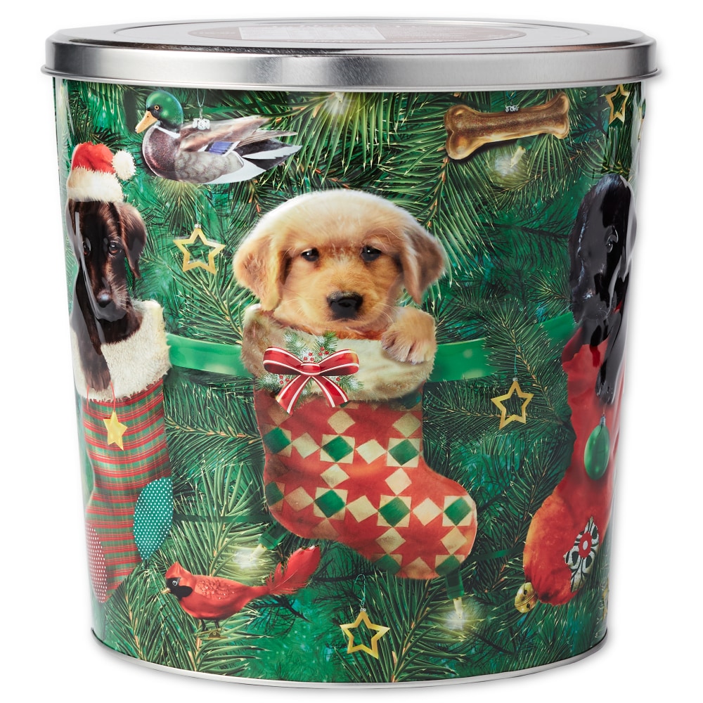 This embossed collectible tin features a scenic winter village design and is a great way to share holiday cheer! It is filled with an assortment of delicious popcorn flavors that include butter, cheese and caramel. The collectible tin can be used to store many household items after the popcorn is gone and also features a clear window on the lid to see the contents inside. Embossed Holiday tin is filled with 12 oz of assorted popcorn flavorsPopcorn flavors include butter, cheese & caramel popcornAll popcorn is bagged & sealed to ensure long shelf life.