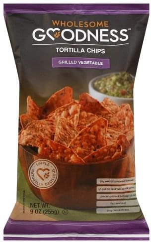 Simple. Naturally delicious. 20 g whole grain per serving. 1/3 cup of vegetables per serving. Low in sodium & saturated fat. 0 g trans fat. 0 mg cholesterol. We're dedicated to providing you and your family with a broad range of products that are simple, naturally delicious and always affordable. Using only natural ingredients, our Grilled Vegetable Tortilla Chips make for a great tasting snack - one that contains 1/3 cup of vegetables per serving. In addition, our tortilla chips provide a generous helping of 20 grams of whole grains per serving. Studies show that eating whole grains, instead of refined grains, lowers the risk of many chronic diseases. Wholesome Goodness - bringing delicious and nutritious together like never before. Wholesome Goodness snack chips are made in a facility which is protective of our natural resources through energy savings, water efficiency, CO2 emissions reduction and improved indoor environmental quality.