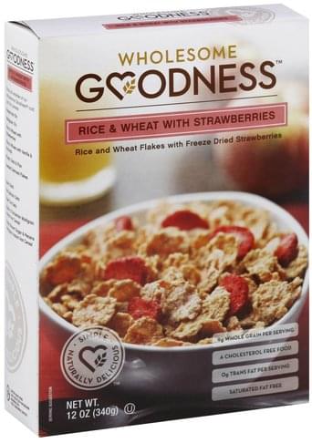 Rice and wheat flakes with freeze dried strawberries. Simple. Naturally delicious. 9 g whole grain per serving. A cholesterol free food. 0 g trans fat per serving. Saturated fat free.
