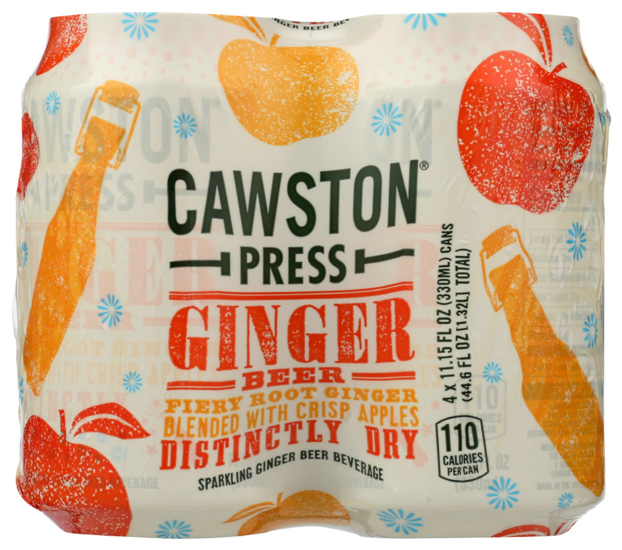 Fiery root ginger. Blended with crisp apples. Distinctly dry. 110 calories per can. We only use pressed juice. Not from concentrate. No artificial sweeteners. No colorings. Contains 13% juice. No GMOs (we never use bio-engineered ingredients in our drinks). Please recycle this plastic where facilities exist. Find us on Twitter. Facebook. Instagram. www.cawstonpress.com. Made in the United Kingdom.