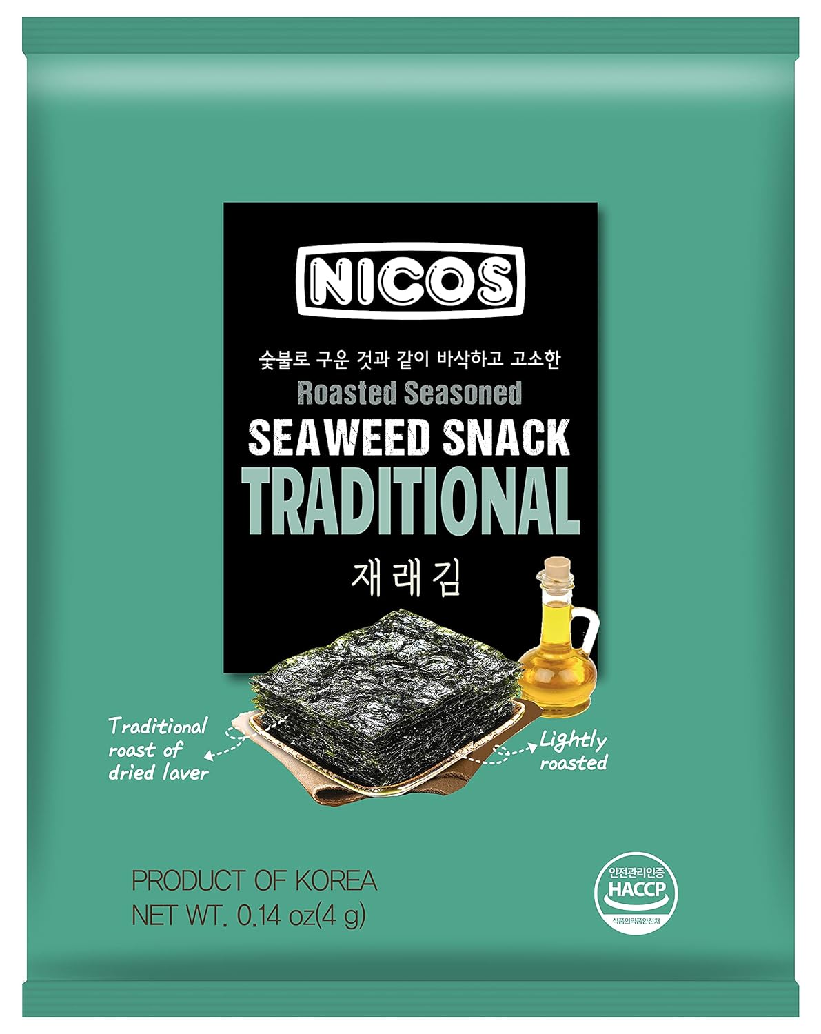 Delicious roasted seasoned seaweed snack. Made from premium seaweed roasted crispy perfection. Seaweed is a famous hydrating ingredient in skincare products. Sold in long lasting individual package for freshness (0.14oz tray).