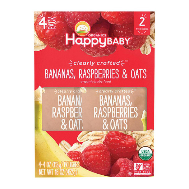 Organic Banana Puree, Organic Raspberry Puree, Water, Milled Organic Whole Grain Oats, ≪2% of: Organic Lemon Juice Concentrate, Ascorbic Acid (Vitamin C)