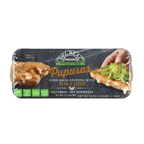 Masa: Water, Corn (Corn Treated with Lime Water), Canola Oil, Potato [(Potato Flakes, Dehydrated), Salt. Filling: Beans [Water, Pinto Beans, Jalapeno Pepper (Jalapeno Pepper, Water, Vinegar, Salt), Salt, Chile Powder (Chili Pepper and Spices)], Mozzarella Cheese (Pasteurized Part Skim Milk, Cheese Culture. Salt, Enzyme).