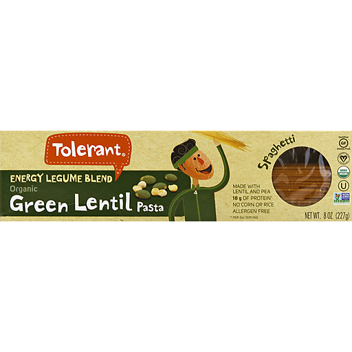 - The manufacturer of Tolerant, Organic Spaghetti Green Lentil Pasta is Tolerant.