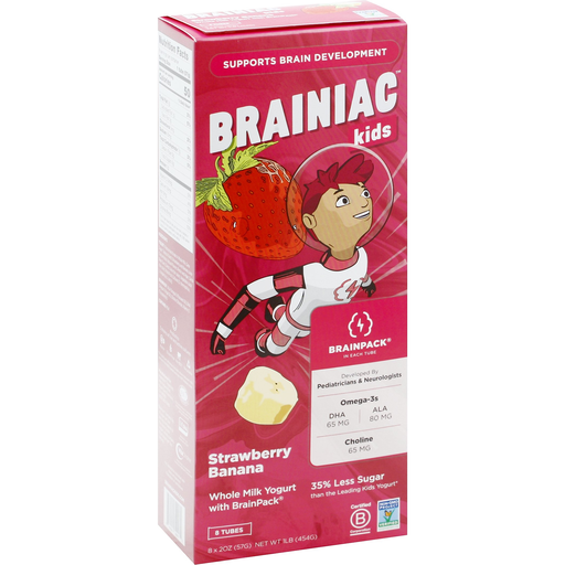 - The manufacturer of Strawberry Banana Whole Milk Yogurt with Brainpack is Brainiac.