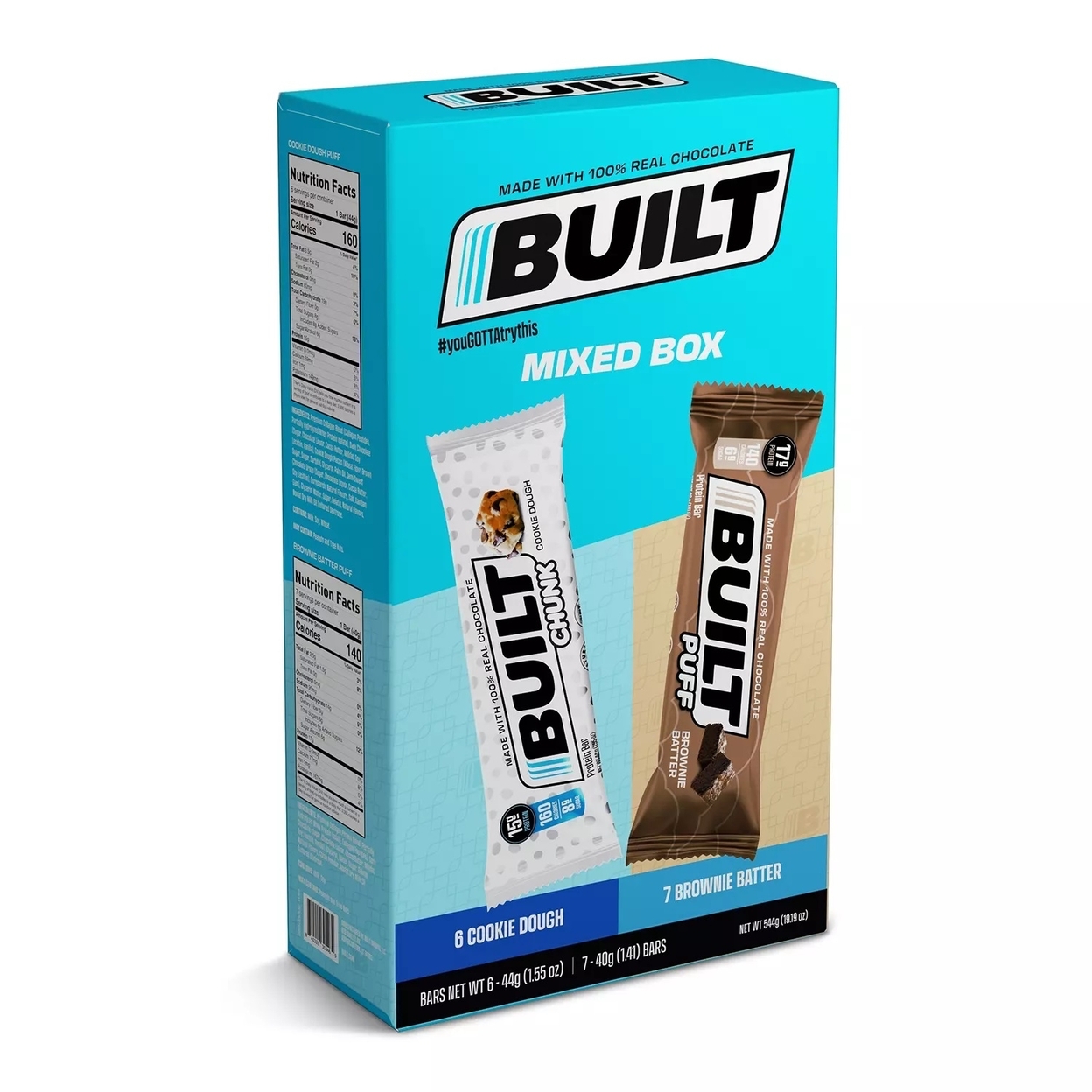Introducing our delectable BUILT PUFF Protein Bar the perfect fusion of flavor and nutrition in a convenient on-the-go package. Satisfy your cravings while fueling your body with the goodness it deserves. Treat yourself to the irresistible taste of cookie dough and Brownie Batter harmoniously blended into a protein-packed bar.