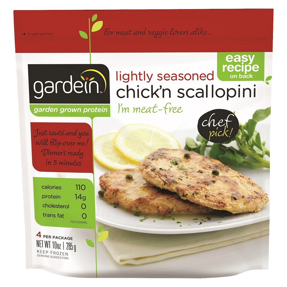 - The manufacturer of Lightly Seasoned Plant-Based Chick'N Scallopini is Gardein.