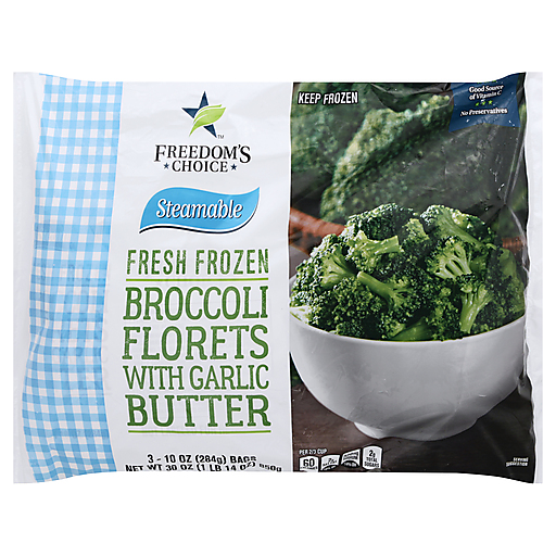 - The manufacturer of Broccoli Florets with Garlic Butter, Garlic Butter is Freedoms Choice.
