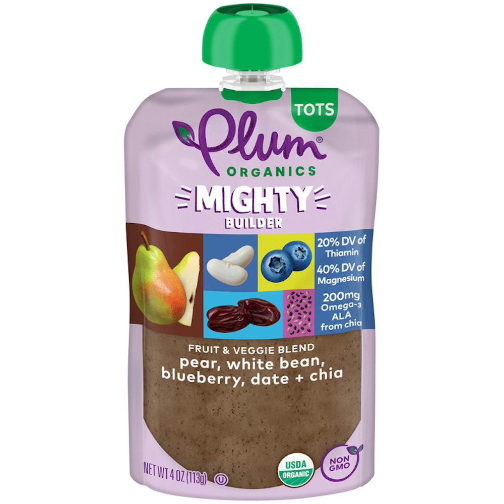 Mighty Protein & Fiber pouches provide plant-based protein from veggies, fruits & seeds and are the perfect on-the-go snack for your active tot! Pear, white bean, blueberry, date and chia are fun, yummy, and real—the perfect way to easily introduce new flavors to your growing little. Made with only certified organic, non-GMO ingredients and no added sugar! OrganicA product that carries the USDA Organic Certification on-pack, thereby meeting the National Organic Program's definition of "Certified Organic" or "100% Certified Organic".