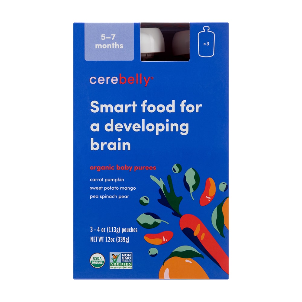 Created by a neurosurgeon and Stanford trained developmental neurobiologist who's also a mom, the 3 flavors in this pack -- Carrot Pumpkin, Sweet Potato Mango and Pea Spinach Pear -- combine to deliver targeted nutrition for babies 5 to 7 months and their developing brains.These pouches, like all Cerebelly products, are veggie-first, tested for heavy metals, and have 0 g added sugar. BPA FreeMade with BPA-free materials.