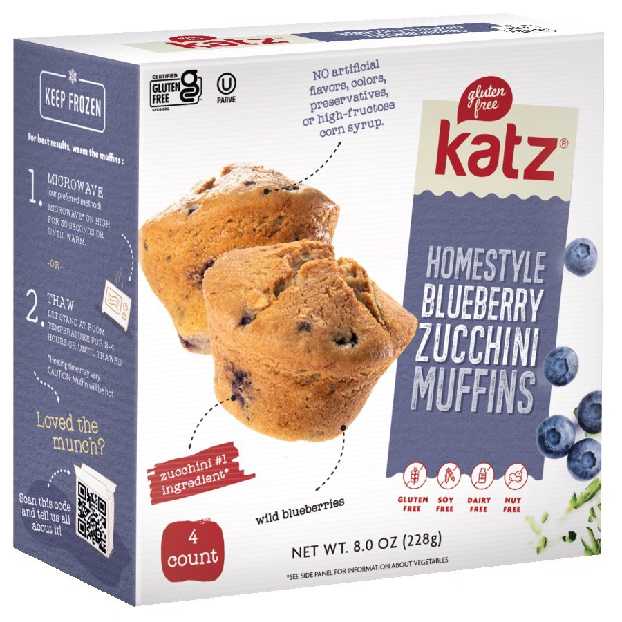 - The manufacturer of Homestyle Blueberry Zucchini Muffins is Katz Gluten Free.