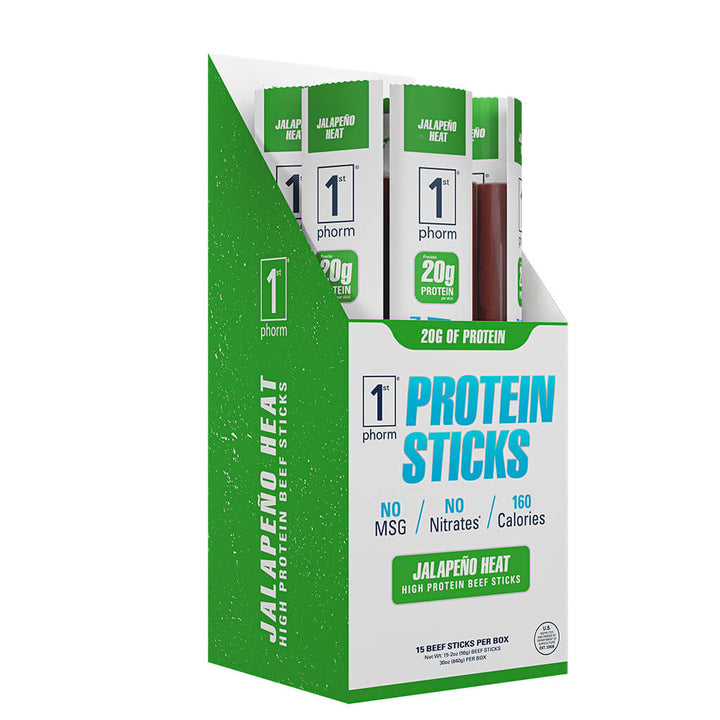 All it takes is just one bite to taste the difference in 1st Phorm’s high-protein meat sticks. It doesn’t matter what your goal is – lose weight, gain muscle, or be healthier, consuming more protein throughout the day is vital! Our protein sticks are made with the highest quality lean beef and pork available, and raised, butchered, processed, and packaged in the heartland of America. All of our amazing flavors are packed with protein for an incredible snack when you’re on the go. If you're looking for a beef stick that delivers real nutrition, this is it. Quality protein, great taste, and nothing artificial. Our commitment to you is to always provide the highest quality and most bioavailable products on the market to help you achieve your fitness goals.*. • 18g of Protein per Stick• No MSG• No Nitrates• 150-200 Calories. *These statements have not been evaluated by The Food and Drug Administration. This product is not intended to diagnose, treat, cure, or prevent any disease.