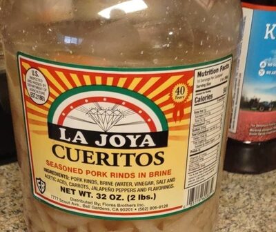 - The country of origin for Cueritos Seasoned Pork Rinds in Brine is United States.