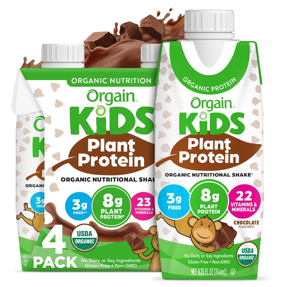 Raising the monkey bars on taste. When it comes to wholesome ingredients, we don’t monkey around. Here at Orgain, our Kids Organic Nutritional Shakes give kiddos the delicious taste they want with the nutrition they need, including 8 grams of Organic plant-based protein, 23 vitamins and minerals and never any artificial colors, flavors, preservatives or sweeteners. This barrel of fun is crafted to be smooth and full of plant-based goodness in kid-friendly flavors like Chocolate and Vanilla that even the pickiest of eaters will love. With 9g of sugar per shake, you can feel good about what is going into your kid’s body. Not to mention, because it’s from Orgain, everything is as clean as it gets, meaning each serving of Kids Organic Nutritional Shakes includes 10 Organic fruits & veggie powders and supports the immune system with vitamins including Vitamins B12, C, D & Zinc. Our plant-based shakes are made without allergen ingredients* so you can confidently pack them in your kids’ lunchboxes for school! These shakes are perfect for those hectic, on the go mornings, or as quick snacks to fuel up before and after activities. Good, clean, and all-in-one nutrition ready for you to take on the go, whenever and wherever you need it. So, what are you waiting for? Time to get your shake on! *Made without milk, wheat, soy, eggs, peanuts, sesame, fish or Crustacean shellfish ingredients. ^These statements have not been evaluated by the Food and Drug Administration. This product is not intended to diagnose, treat, cure, or prevent any disease.