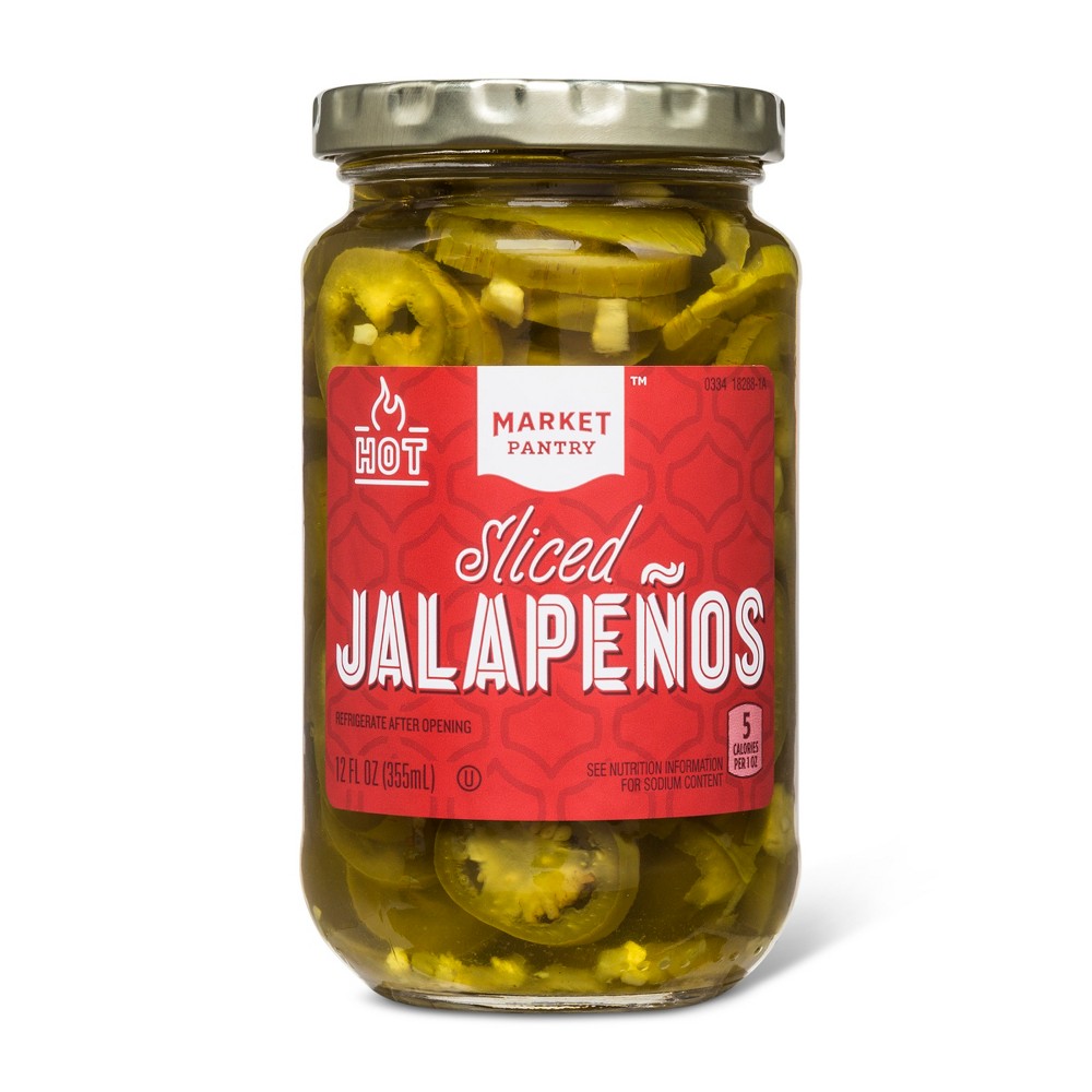 The 12-Ounce Hot Sliced Jalapenos from market pantry™ make a versatile addition to your kitchen. These ready-to-eat hot sliced jalapenos are super easy to add to your favorite dishes — load them up to complement your nachos, pizzas, salads or hot dogs, or use just a few as a garnish for all sorts of dishes. From topping a bowl of rice to heaping them on your tacos and rolling them in your burritos, you'll bring the heat to what might otherwise be a bland dish.