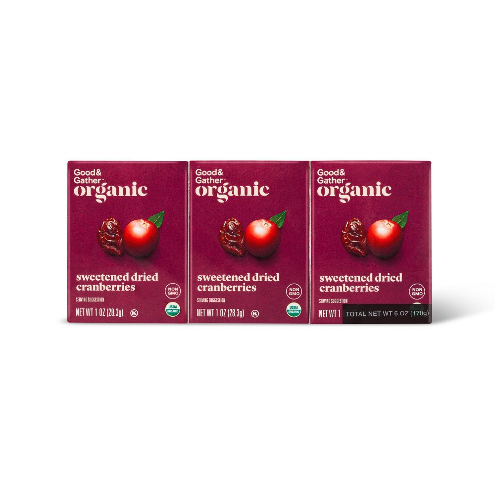 Add just the right amount of sweetness to your morning routine with these Organic Dried Cranberries from Good & Gather™. With no added sulfites and no artificial flavors, these USDA organic dried cranberries offer an ideal balance of tart and sweet so you can satisfy your craving and know you’re making a great choice for you and your family. And the snacking possibilities are endless — these cranberries are perfect for snacking on their own, or mixed into yogurt, granola, salads or trail mix. Take them on the go for a great, easy snack option on a busy day, or add them into a family dinner for that perfect touch of sweetness the whole family will enjoy. Every product that carries the Good & Gather™ name starts with quality ingredients that deliver great taste, making it easier for you and your family to eat well, every day. We promise you’ll love each bite, or your money back.