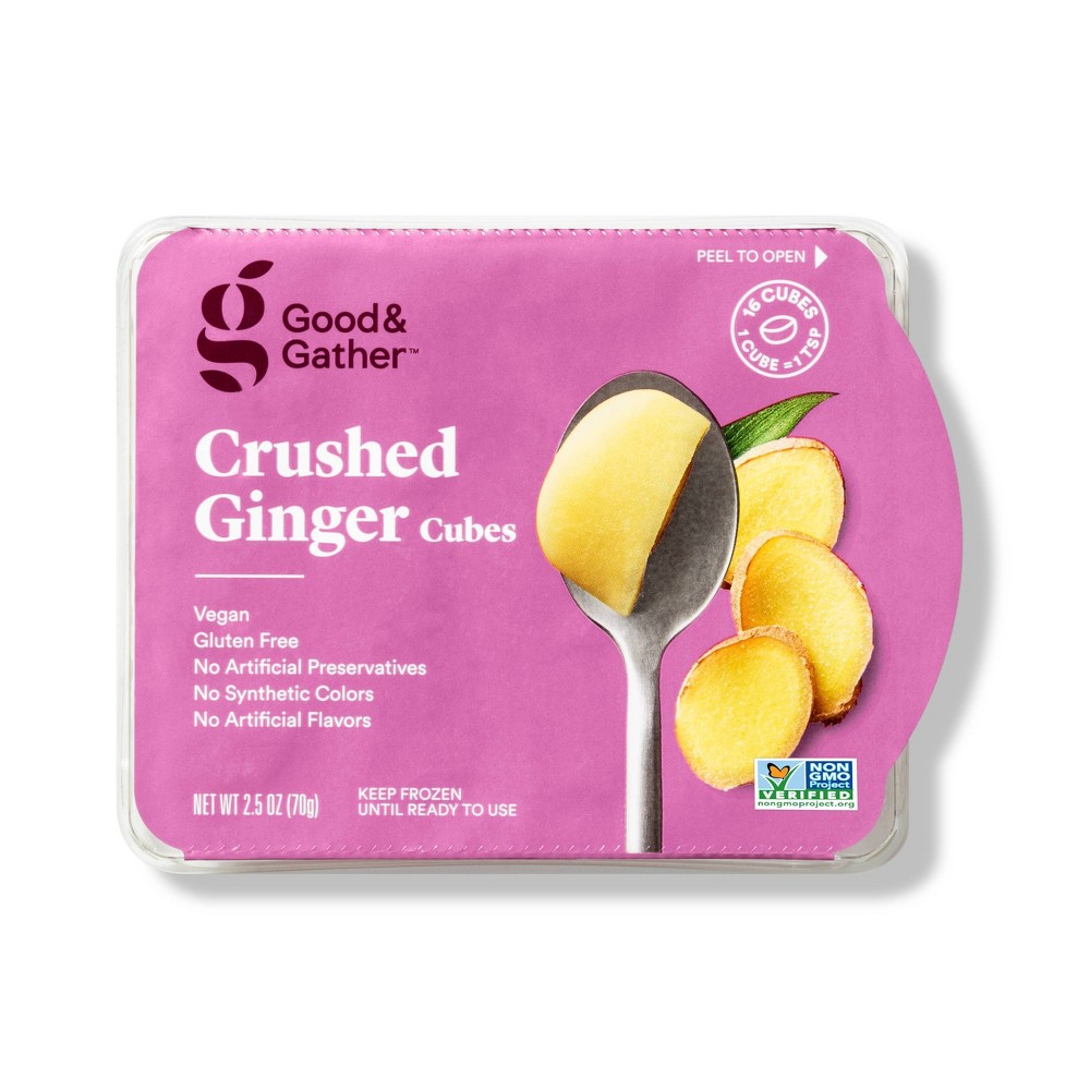 Add extra flavor to stir fry, curry and other savory or sweet dishes without all the extra work with the help of Frozen Ginger from Good & Gather™. In cubes for easy measuring, this crushed ginger comes frozen so you can easily store it until you need it, and each cube is equal to 1 tsp fresh ginger for simple incorporation into established recipes. Plus, the ginger is made with no artificial flavors or preservatives. This is a grocery pick you'll be happy to serve your family. Keep a package on hand to add a little extra flavor to just about any dish. Every product that carries the Good & Gather™ name starts with quality ingredients that deliver great taste, making it easier for you and your family to eat well, every day. We promise you'll love each bite, or your money back.